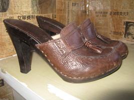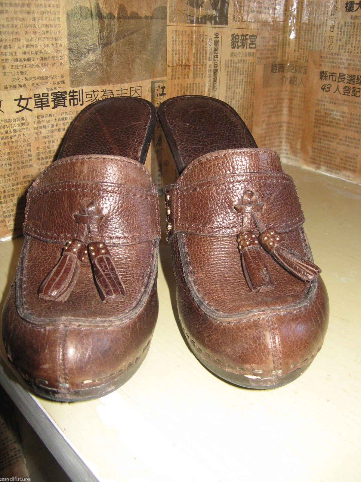 Lighty used, Michael kors, "San Antonio" platform clog in size 6 1/2 UK4 36.5 in brown leather with wooden soles/ 4 1/2 inch heel and 1 1/2 in platform. These were professionally half soled at time of purchase. They have been worn about 4 times so there are a few scuffs and scratches, but still in great condition.I love to shop and I'm closet cleaning the stuff I didn't wear so I have room for new. I will be listing designer fashions all month.Please ask all questions before bidding as all sales are final. I will combine shipping for multiple purchases. Yee Haw! Remember that I am on the West coast of the US so shipping to the East coast and foreign countries can take a week longer. I try to ship out the first business day after you pay and I always provide you tracking info at that time so you may see where your purchase is. I can not be responsible for the the length of time it takes to reach you once it leaves my hands. Thanks for understanding.