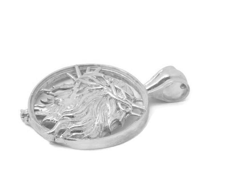 Welcome to Twins jewelry. Jesus Christ with Thorn Crown Pendant .925 Sterling Silver. The Charm Is 100% Handcrafted and Manufactured by Us Here in the USA. DIMENSIONS: HEIGHT: 46mm. WIDTH: 32mm. WEIGHT Approximately: 16.9 Grams We Have Been in The Jewelry Business for More Than 36 Years. Please Judge by The Pictures. If Any Questions, Feel Free to Ask... THANK YOU VISIT AGAIN Item#1206