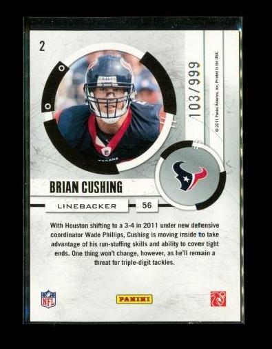 2011 DONRUSS ELITE HIT LIST Chrome Football Card #2 BRIAN CUSHING Houston Texans Limited Edition 103/999