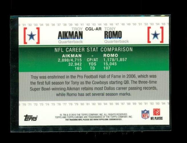 2010 TOPPS CHROME GRIDIRON LINEAGE Dual Football Card CGL-AR TROY AIKMAN, TONY ROMO Dallas Cowboys