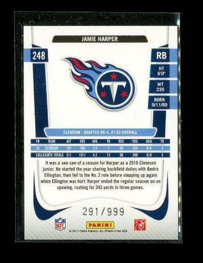 2011 PANINI PRESTIGE ROOKIE DRAFT PICKS Football Card #248 JAMIE HARPER Tennessee Titans Limited Edition 291/999