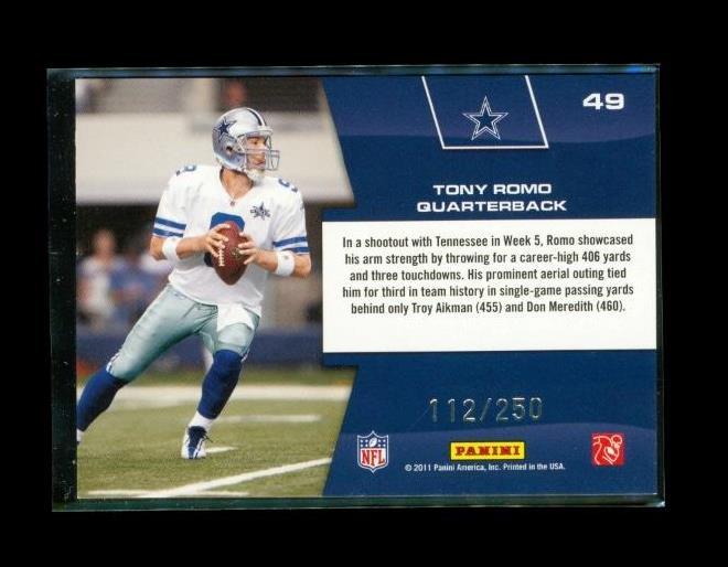 2011 PANINI PRESTIGIOUS PROS Chrome Football Card #49 TONY ROMO Cowboys /250