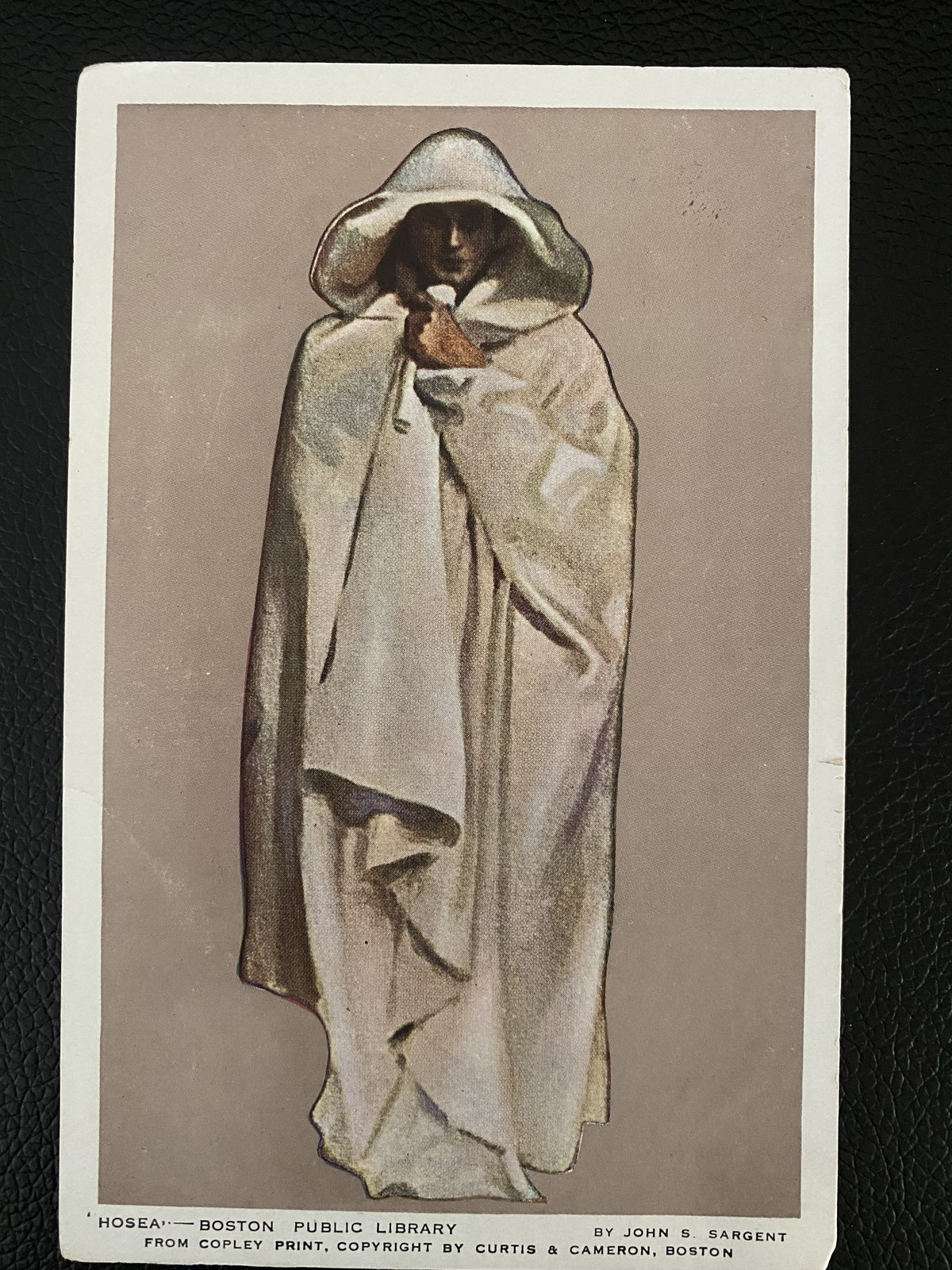 This early 1900's Postcard is the artists impression of the Prophet Hosea. John S Sargent's Decorative painting is in the Boston Public Library.