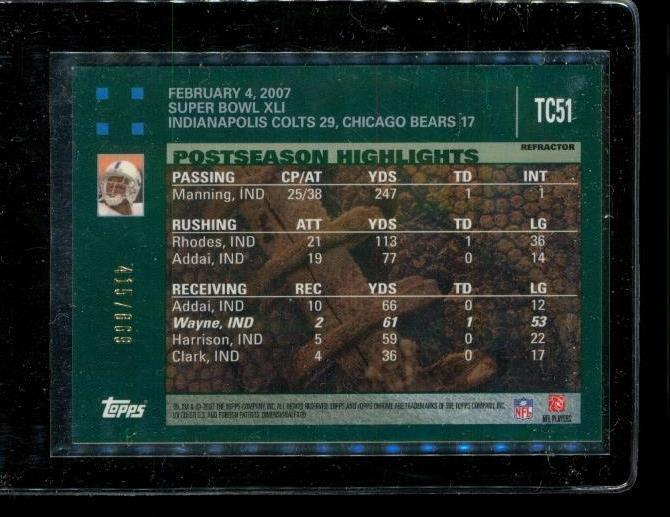 2007 TOPPS CHROME POSTSEASON HIGHLIGHTS Refractor Football Card TC51 PEYTON MANNING PASS TO REGGIE WAYNE SUPER BOWL XLI Indianapolis Colts Limited Edition 415/869
