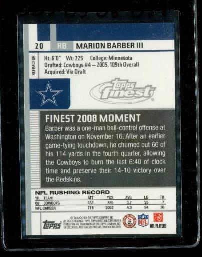 2009 TOPPS FINEST Refractor Football Trading Card #20 MARION BARBER III Cowboys