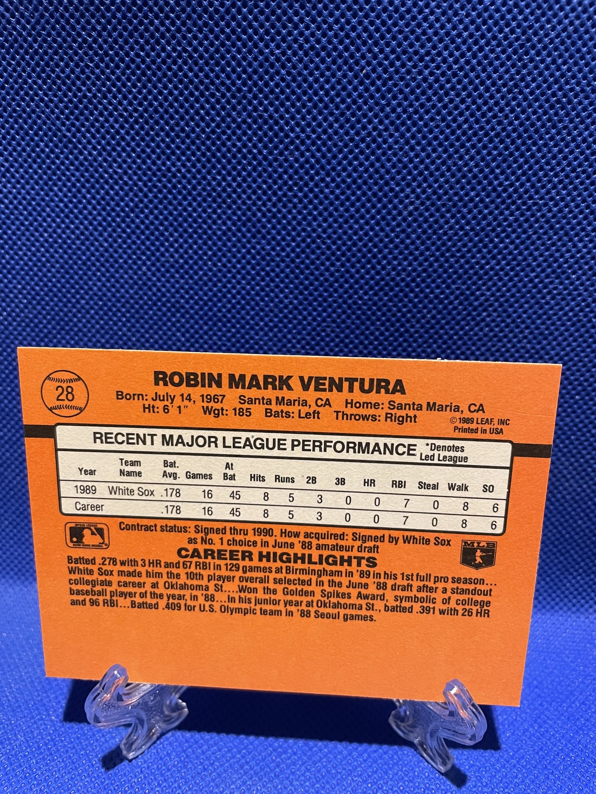 Robin Ventura # 28 1990 Donruss Baseball Card Error