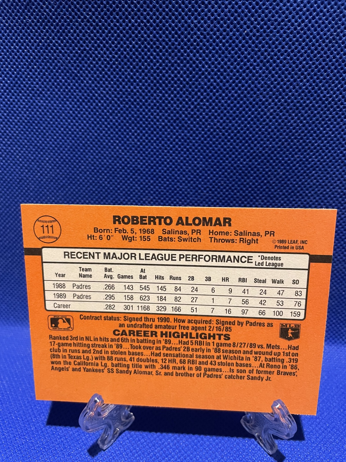 Roberto Alomar # 111 1990 Donruss Card Error No Dot Inc