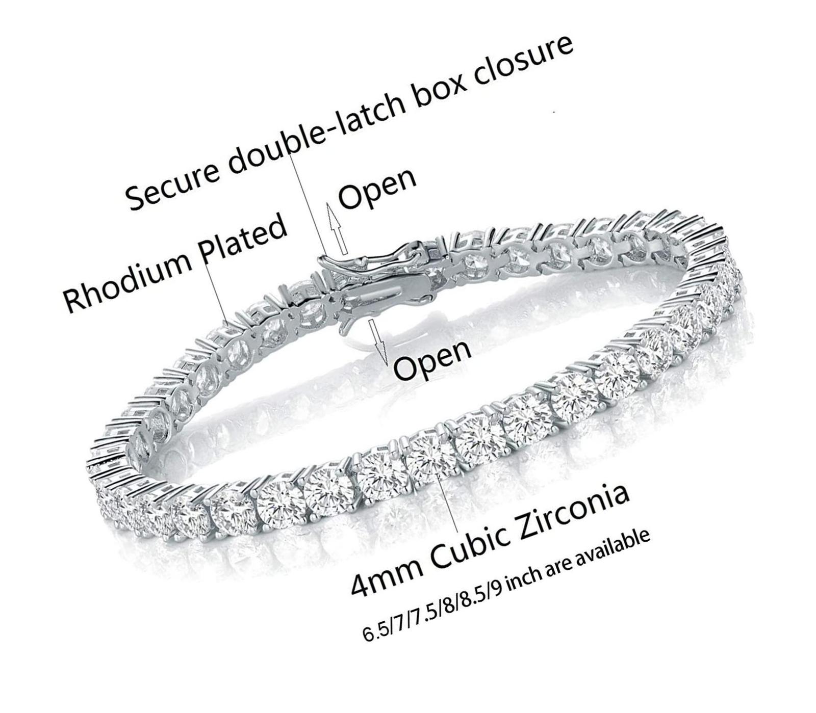 18K White Gold Plated 4.0 Round Cubic Zirconia Tennis
