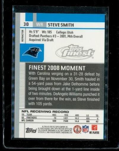 2009 TOPPS FINEST Refractor Football Card #30 STEVE SMITH Carolina Panthers