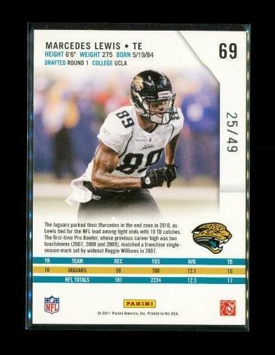 2011 PANINI LONGEVITY RC STARS Holo Football Card #69 MARCEDES LEWIS Jaguars /49