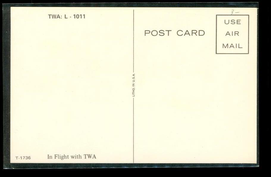 Vintage Paper Aircraft Postcard Airplane in Flight With TWA L-1011