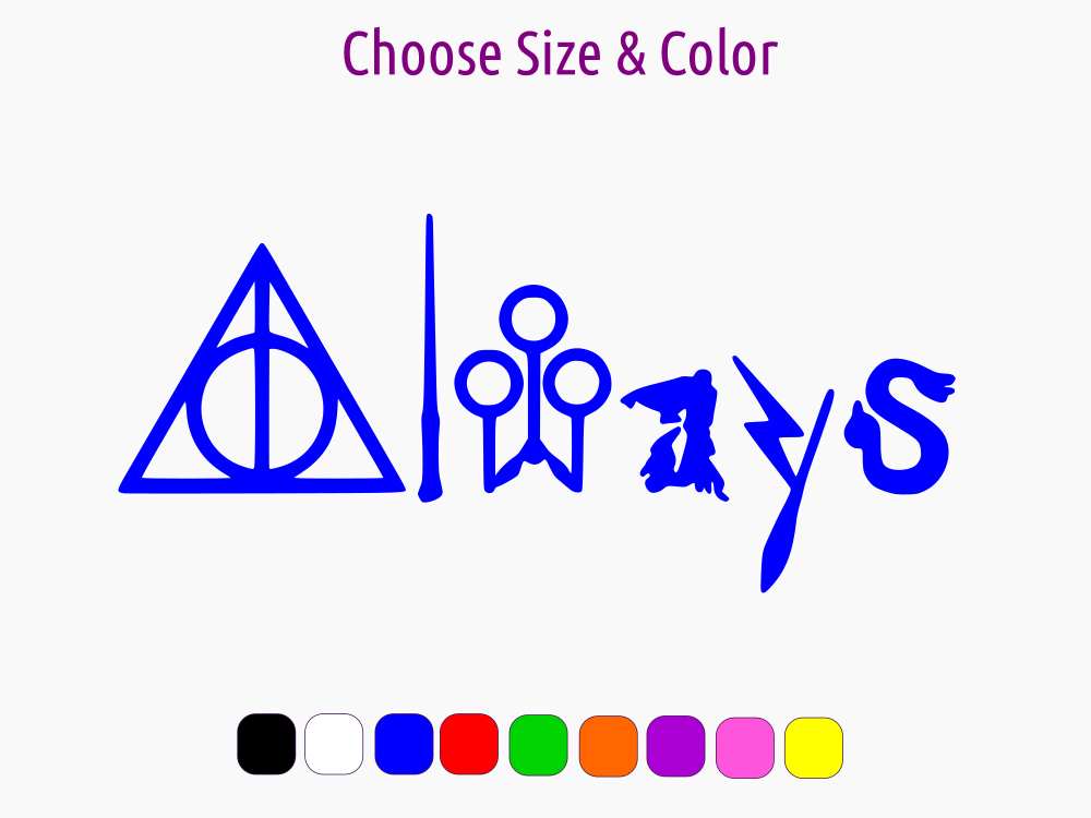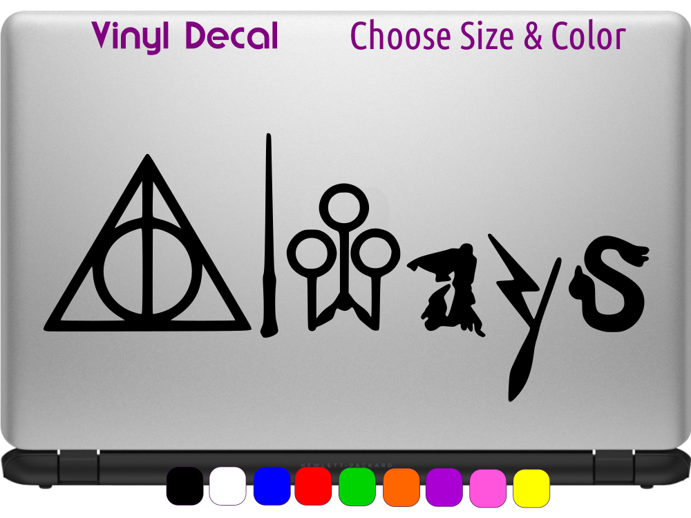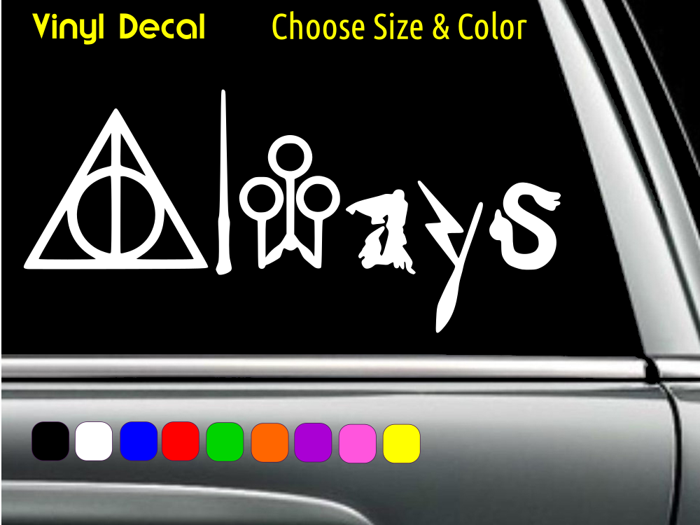 Harry Potter Always Deathly Hallows Wand Vinyl Decal CHOOSE SIZE COLOR
