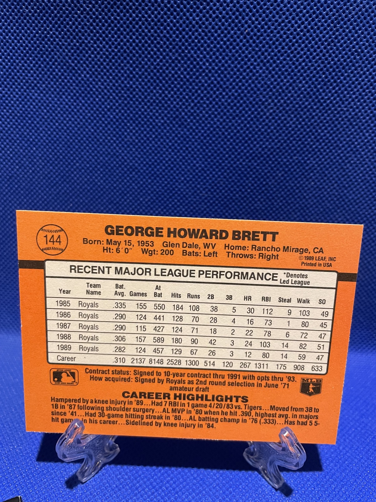 George Brett # 144 1990 Donruss Baseball Card Error No Dot after Inc