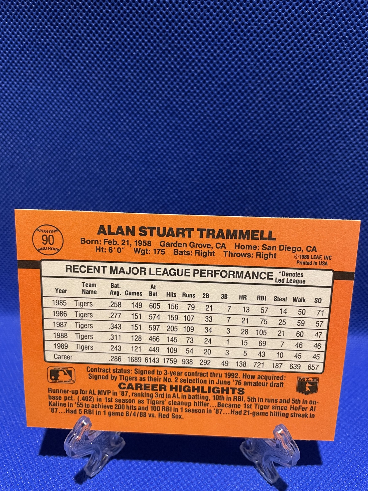 Alan Trammell # 90 1990 Donruss Baseball Card Error