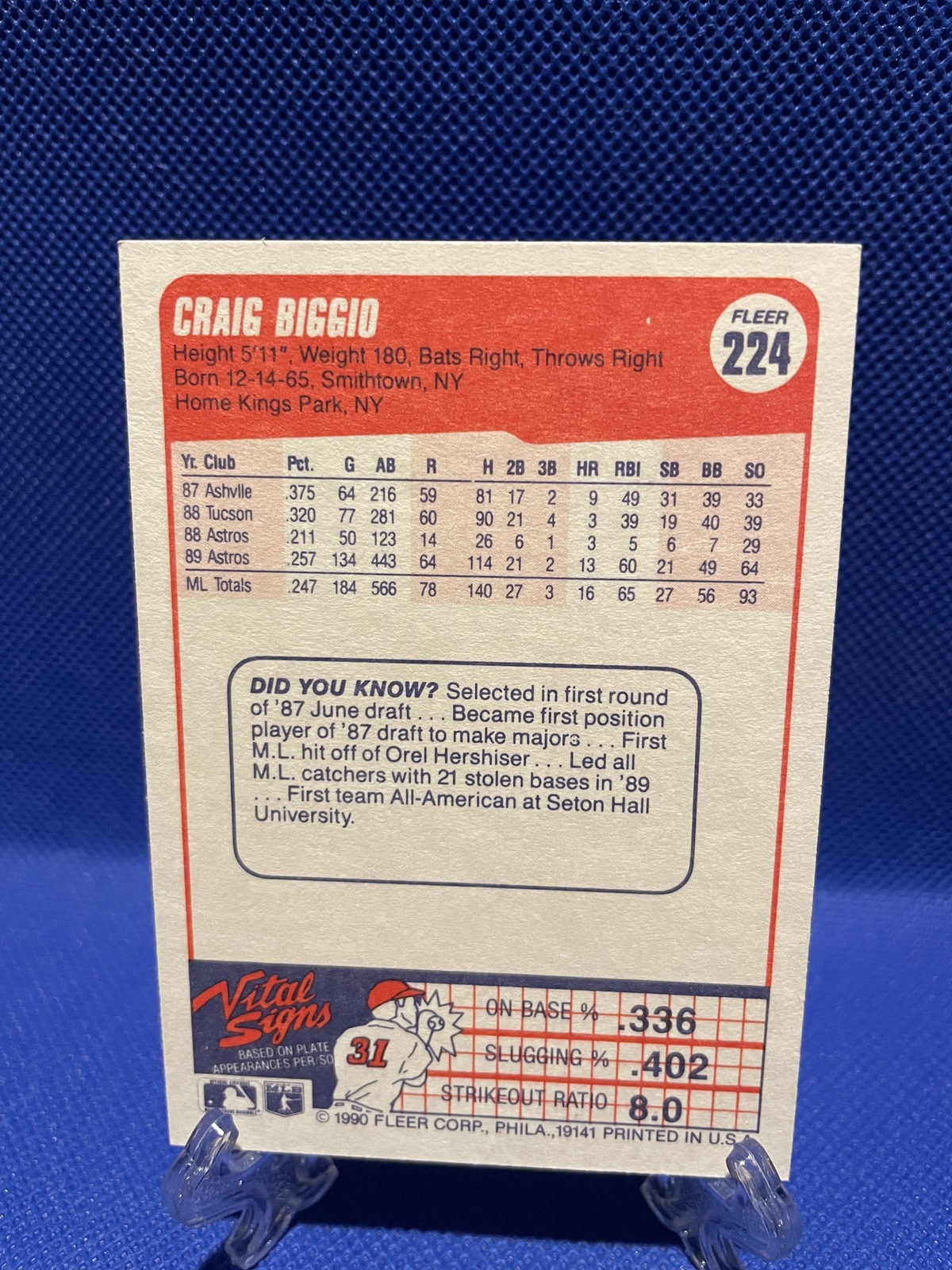 Craig Biggio # 224 1990 Fleer Baseball Card