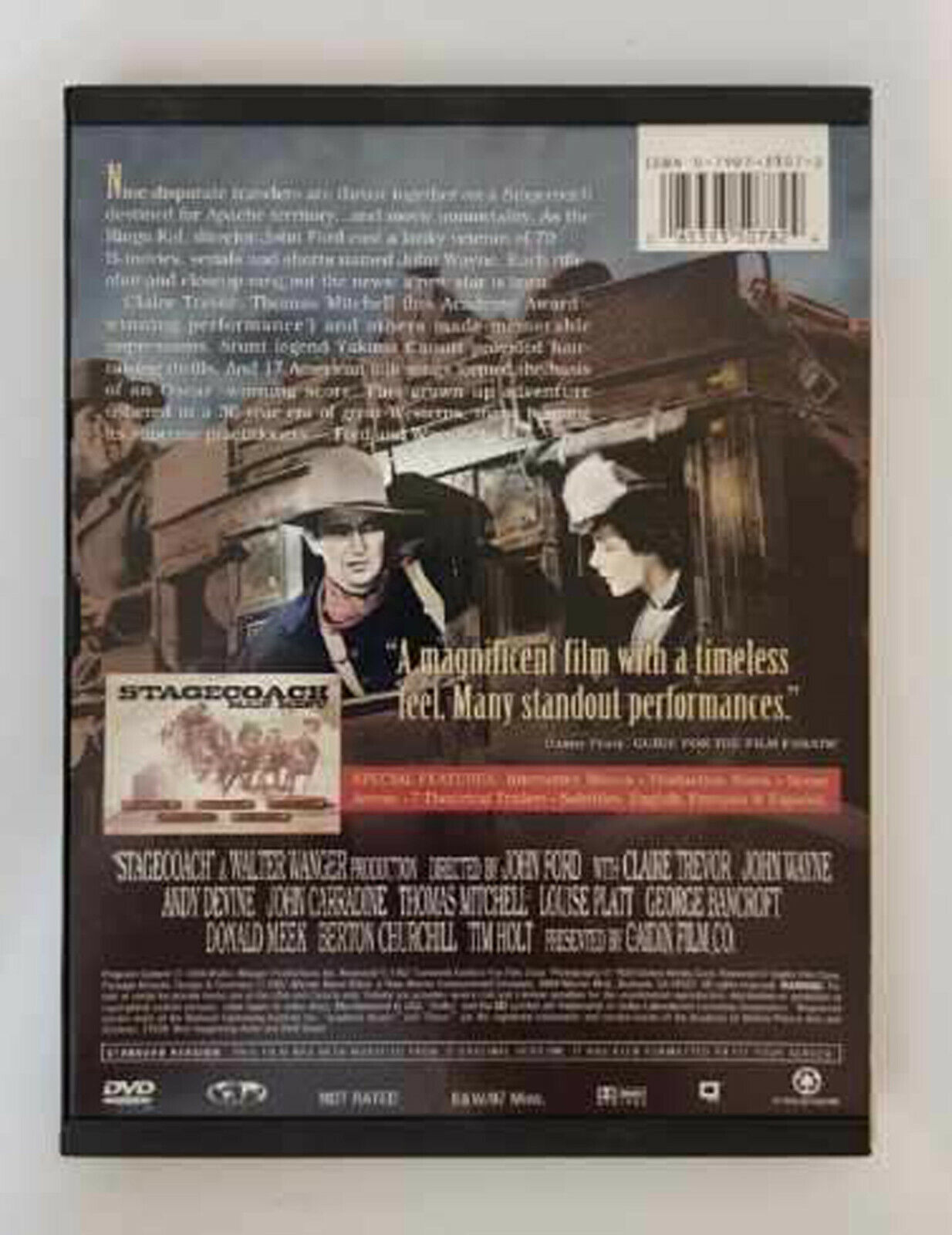 closed caption, Black and White, not rated, 97 minutes, John Wayne,Claire Trevor, English, French and Spanish