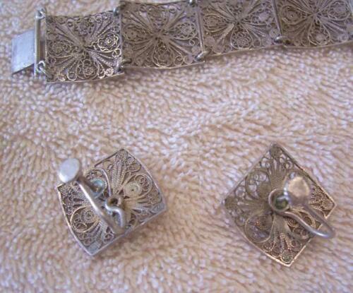 Lot: Vintage Filigree Barcelet & Earrings, 900 Silver Jewelry Indonesia 1950's