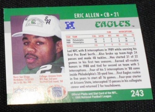 1990 Pro Set Eric Allen 243, Philadelphia Eagles, NFL Football Sports Card, RARE