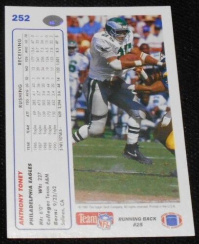 1991 Upper Deck Anthony Toney 252, Philadelphia Eagles, NFL Football Sports Card
