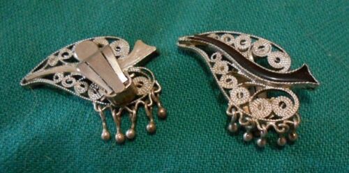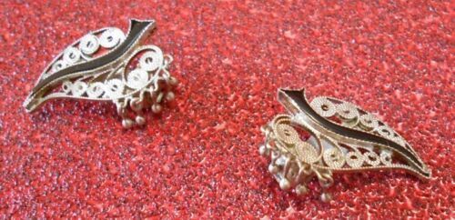 Vintage Leaf Earrings; Clips, 900 Silver Jewelry Handmade Indonesia 1950's
