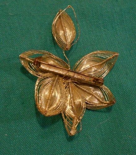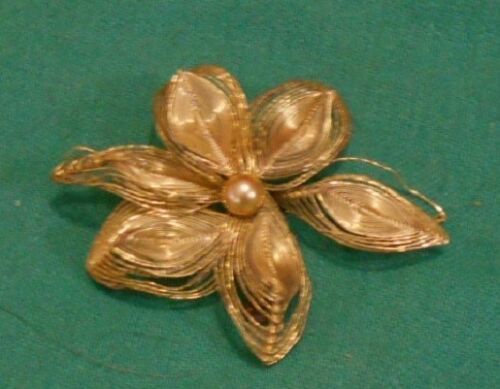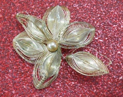 Vintage Filigree Flower Pin; Gold-tone Costume Jewelry & Crafts, Indonesia 1950s