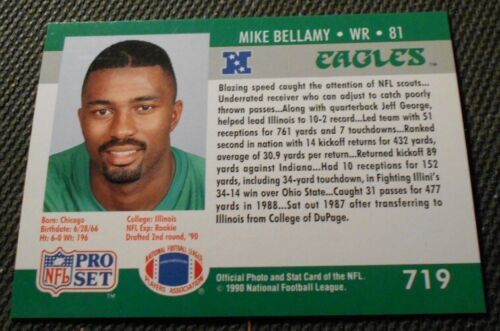 1990 Pro Set Mike Bellamy451, Philadelphia Eagles, NFL Football Sports Card, A+