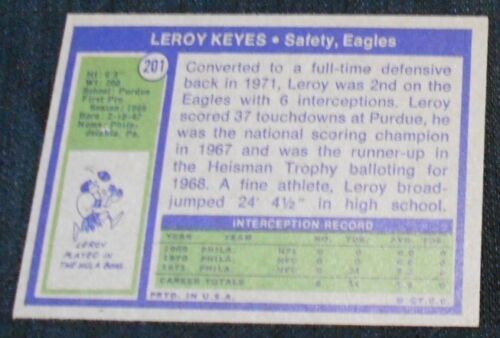 1972 Topps Leroy KeyesPhiladelphia Eagles 201, NFL Football Sports Card, Vintage