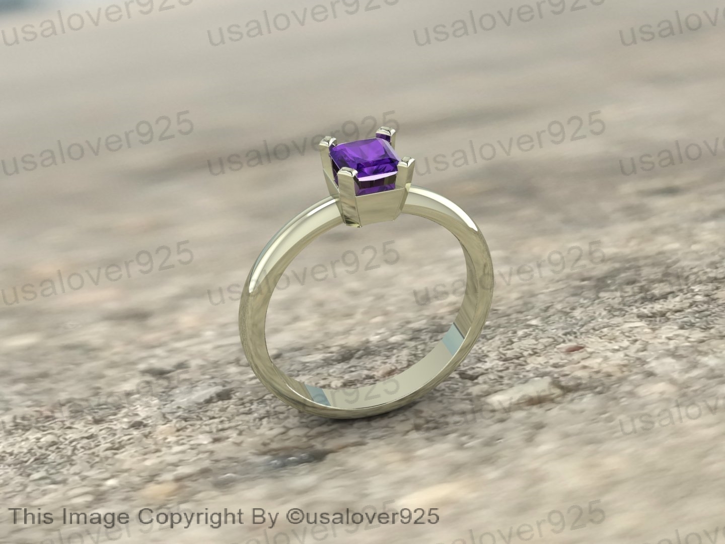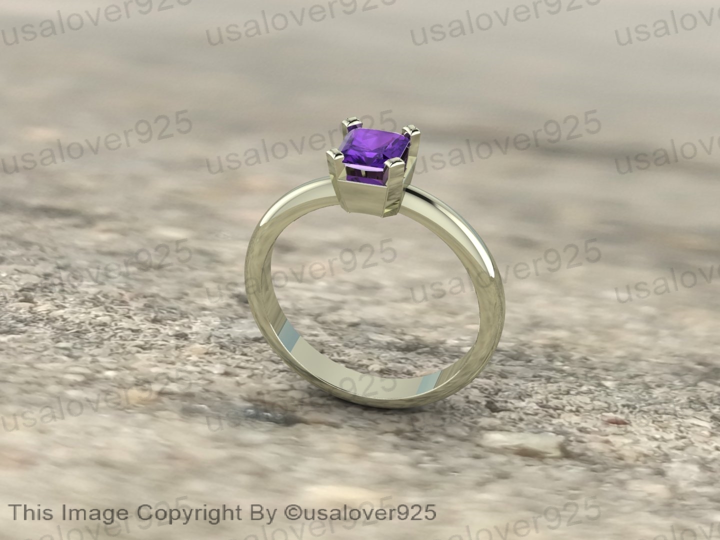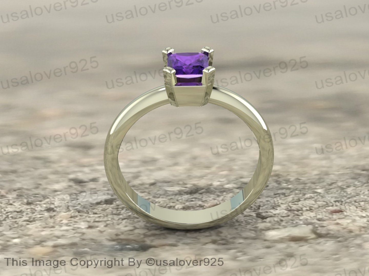 Purple Amethyst Natural Gemstone Women Sterling Silver Ring Jewelry