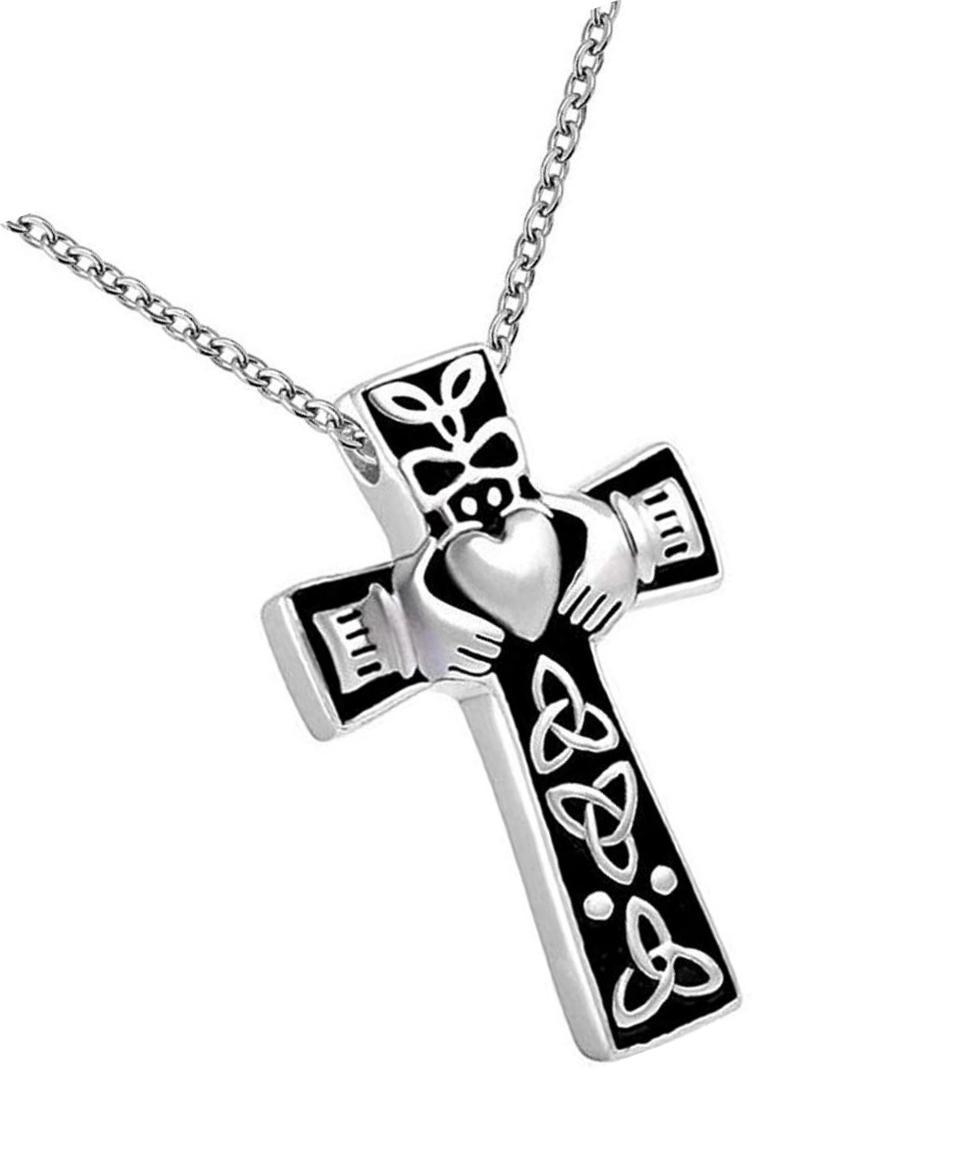 Celtic Knot Claddagh Scarf Cross Urn Necklace for Ashes for