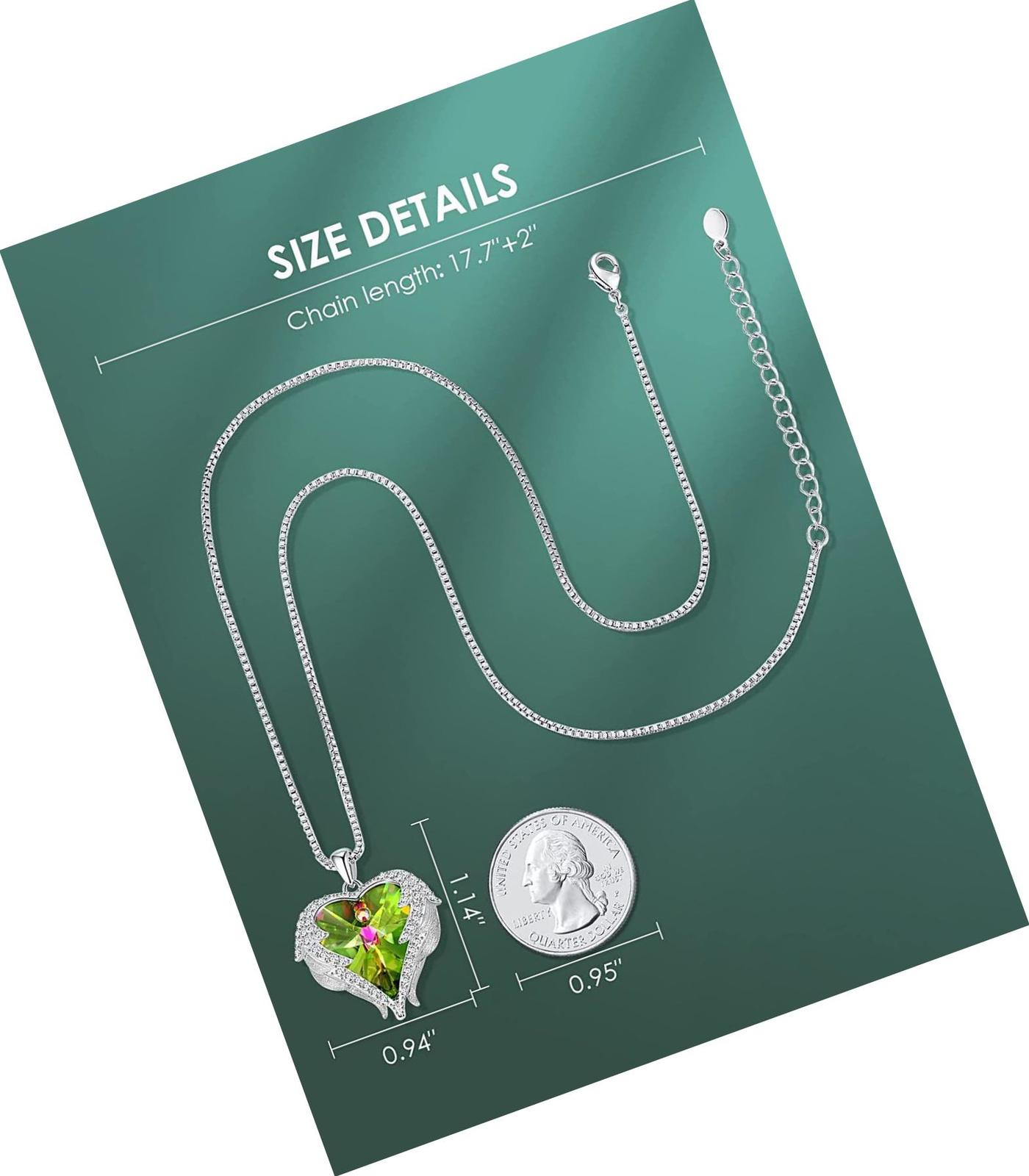Angel Wing Love Heart Necklaces for Women, Silver Tone