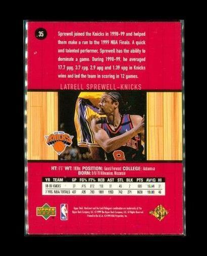 Vintage 1998-99 UPPER DECK HARDCOURT Basketball Card #35 LATRELL SPREWELL New York Knicks