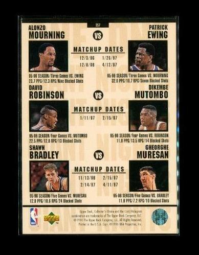 Special Notes: Dual card featuring two players and their one-on-one matchup date on front. Six other players and their one-on-one matchup dates featured on back. Very good condition, very light edge wear.