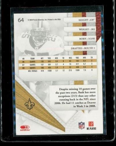 2009 DONRUSS PANINI PLAYOFF ABSOLUTE MEMORABILIA Holographic Football Card #64 REGGIE BUSH New Orleans Saints