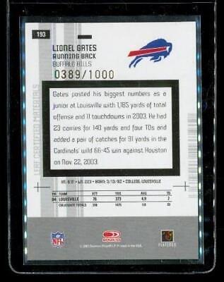 2005 LEAF CERTIFIED MATERIALS NEW GENERATION Chrome Football Card #193 LIONEL GATES Buffalo Bills Limited Edition 0389/1000