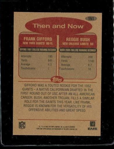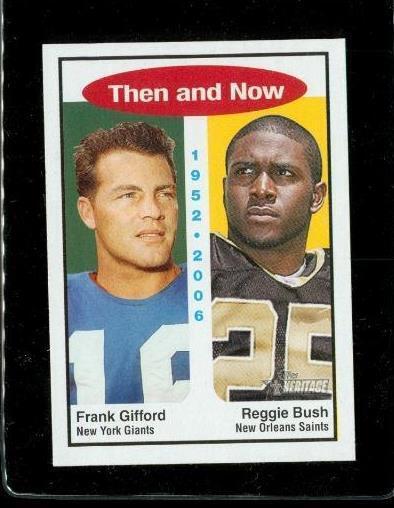 2006 TOPPS HERITAGE THEN AND NOW Dual Football Card TN1 FRANK GIFFORD New York Giants, REGGIE BUSH New Orleans Saints