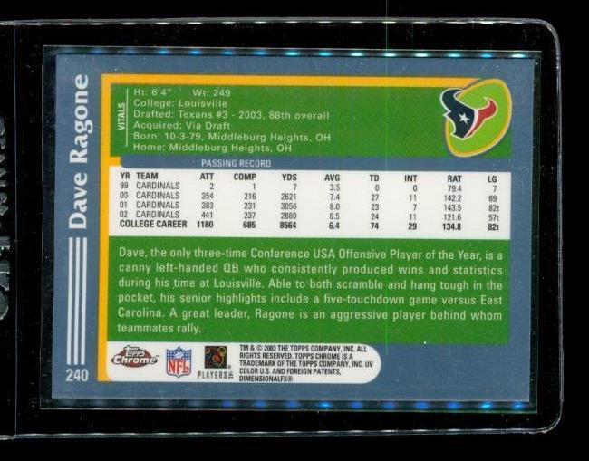 Vintage 2003 TOPPS CHROME ROOKIE Football Card #240 DAVE RAGONE Houston Texans