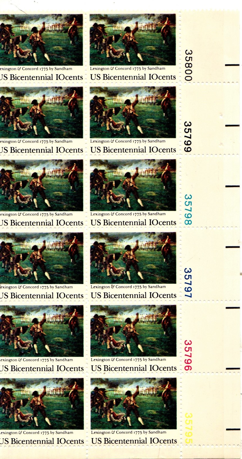 U S Stamps - 1975 US 10 Cent Bicentennial Lexington & Concord Plate Block 12 sta