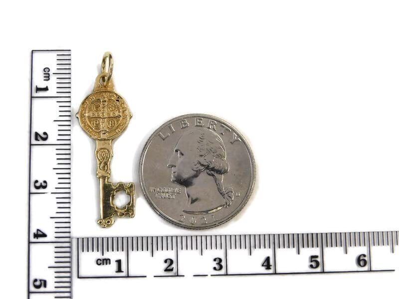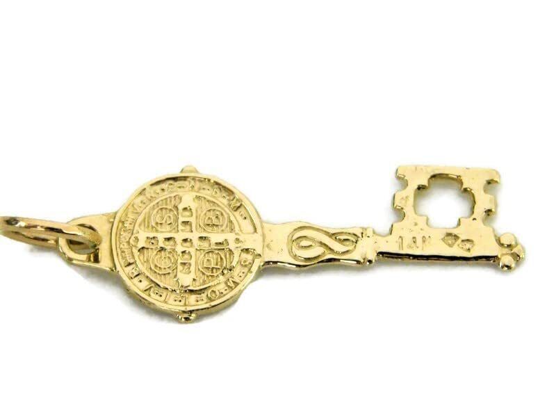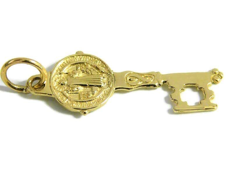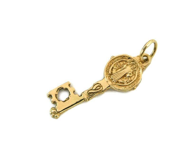 Welcome to Twins jewelry. Saint Benedict Small Key (San Benito) Charm Pendant 14k Yellow Gold. The Charm Is 100% Handcrafted and Manufactured by Us Here in the USA. DIMENSIONS: HEIGHT: 15mm. WIDTH: 10mm. WEIGHT Approximately: 1.6 Grams We Have Been in The Jewelry Business for More Than 36 Years. Please Judge by The Pictures. If Any Questions, Feel Free to Ask... THANK YOU VISIT AGAIN