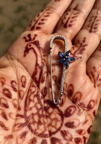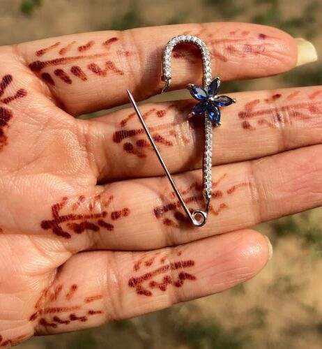 925 Sterling Silver CZ Safety Pin, Brooch, Saree Pin, Hijab Pin, Dupatta Pin #5