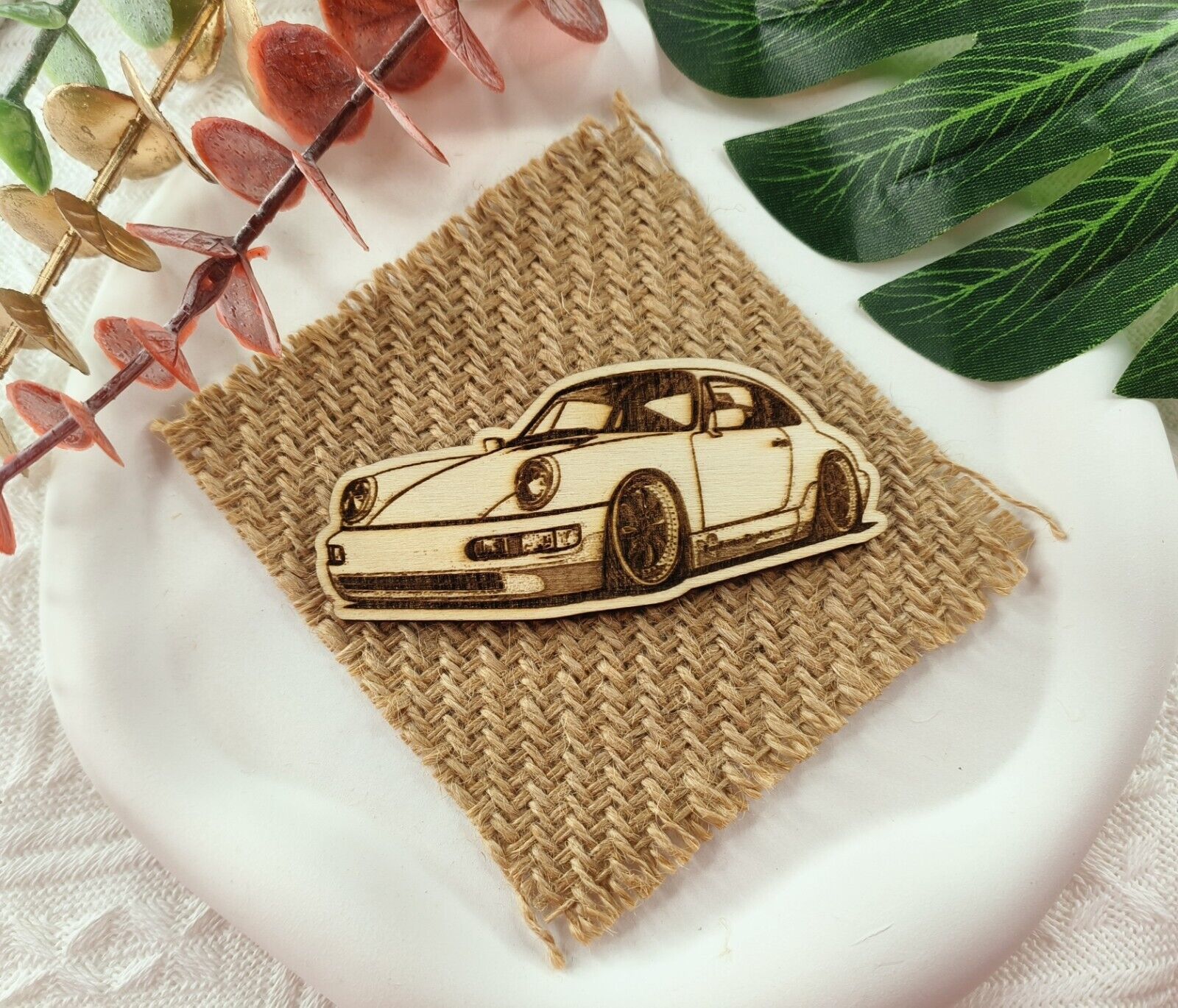 Introducing the perfect addition to your fridge or magnetic board - a stunning Porsche 911 964 plywood fridge magnet! Measuring at approximately 3.5 inches by 1.5 inches, this eye-catching magnet is a must-have for any car enthusiast or Porsche fan.