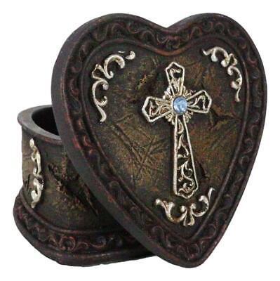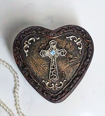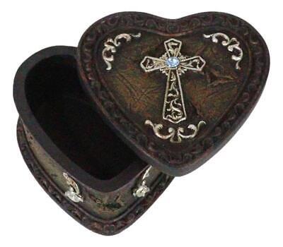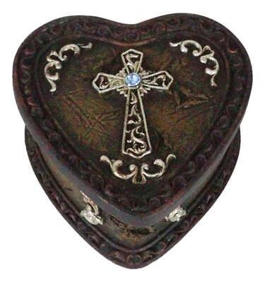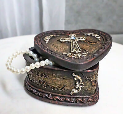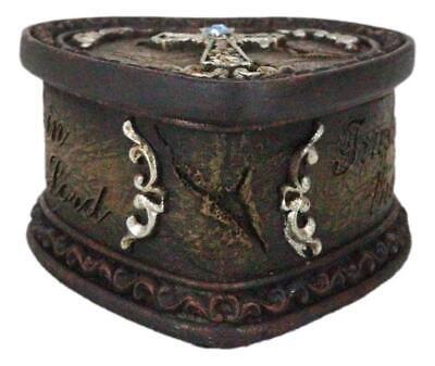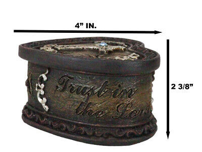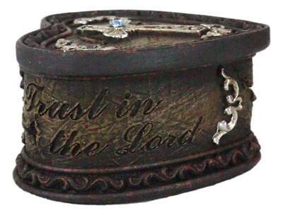 Rustic Western Trust In The Lord Scroll Cross Heart Shaped Jewelry Trinket Box