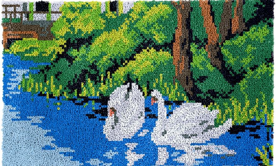 This Two White Swans Rug Latch Hooking Kit will give you a rug that is wonderfully lush. This rug is easy to fit any decor and the possibilities are astounding. You can use this rug on the floor, wall, sofa, bed or window.
