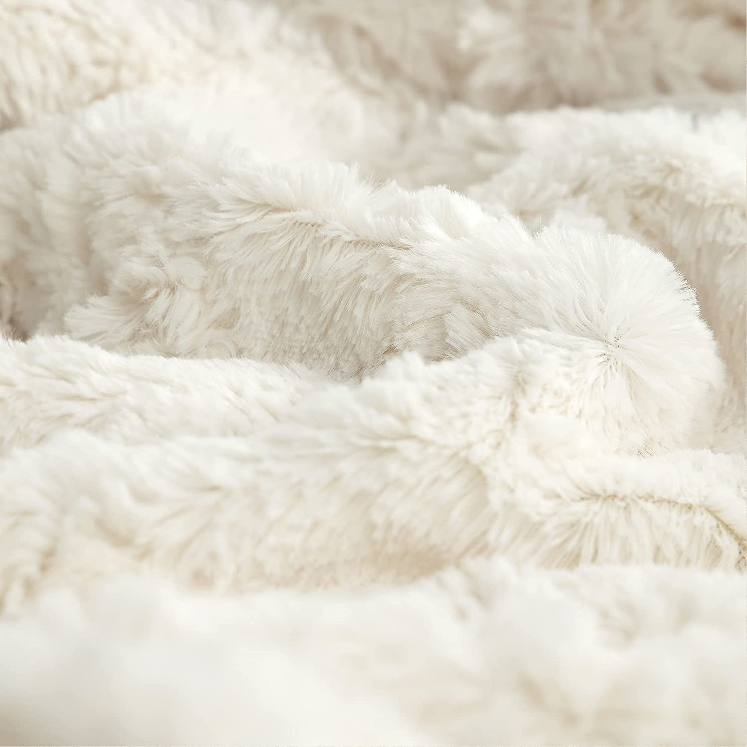 Toonow Faux Fur Luxury Throw Blanket, Double Side Soft Fluffy, 51"X67" (White).