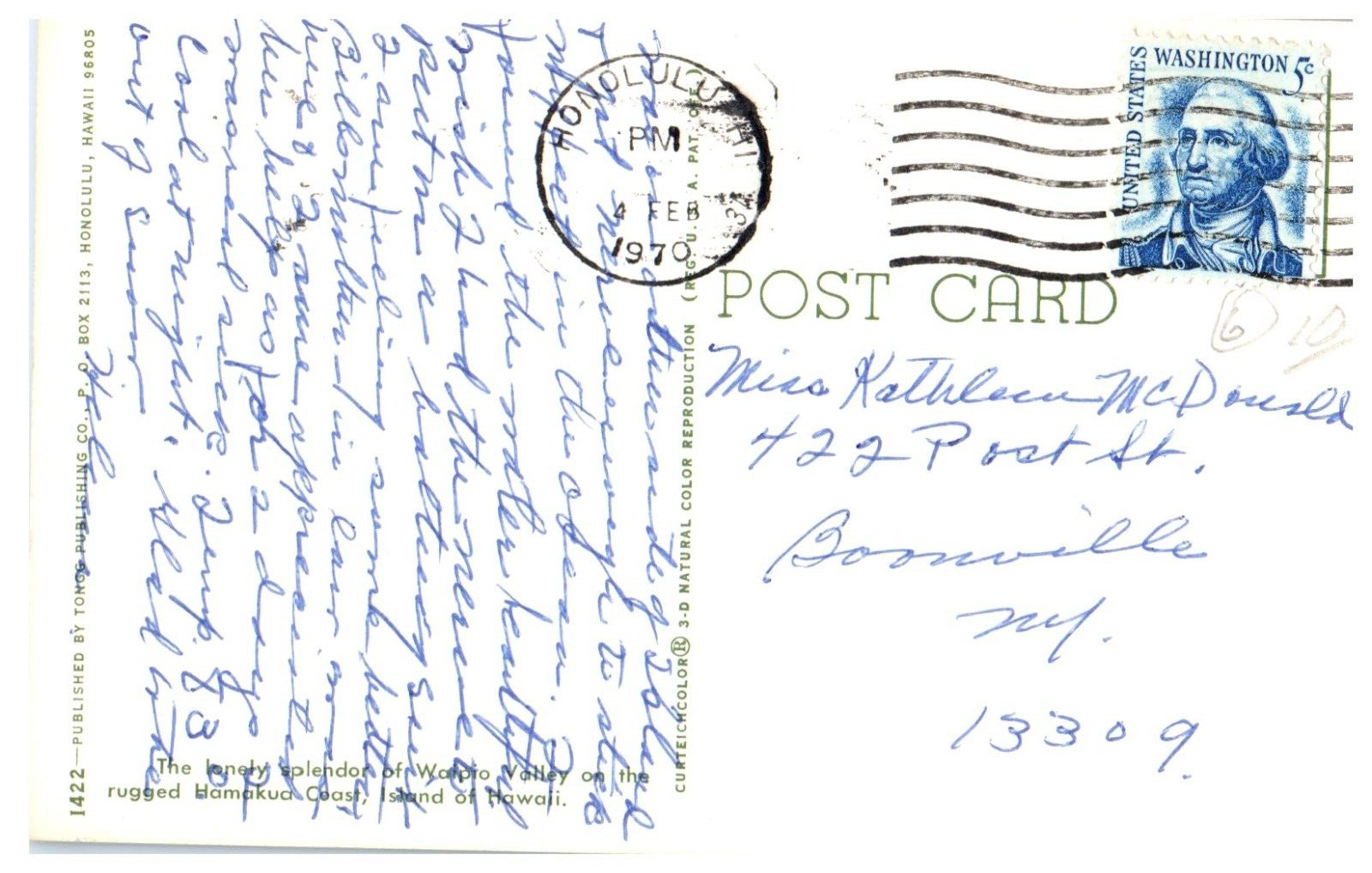 Hamakua Coast Hawaii Postcard Posted 1970