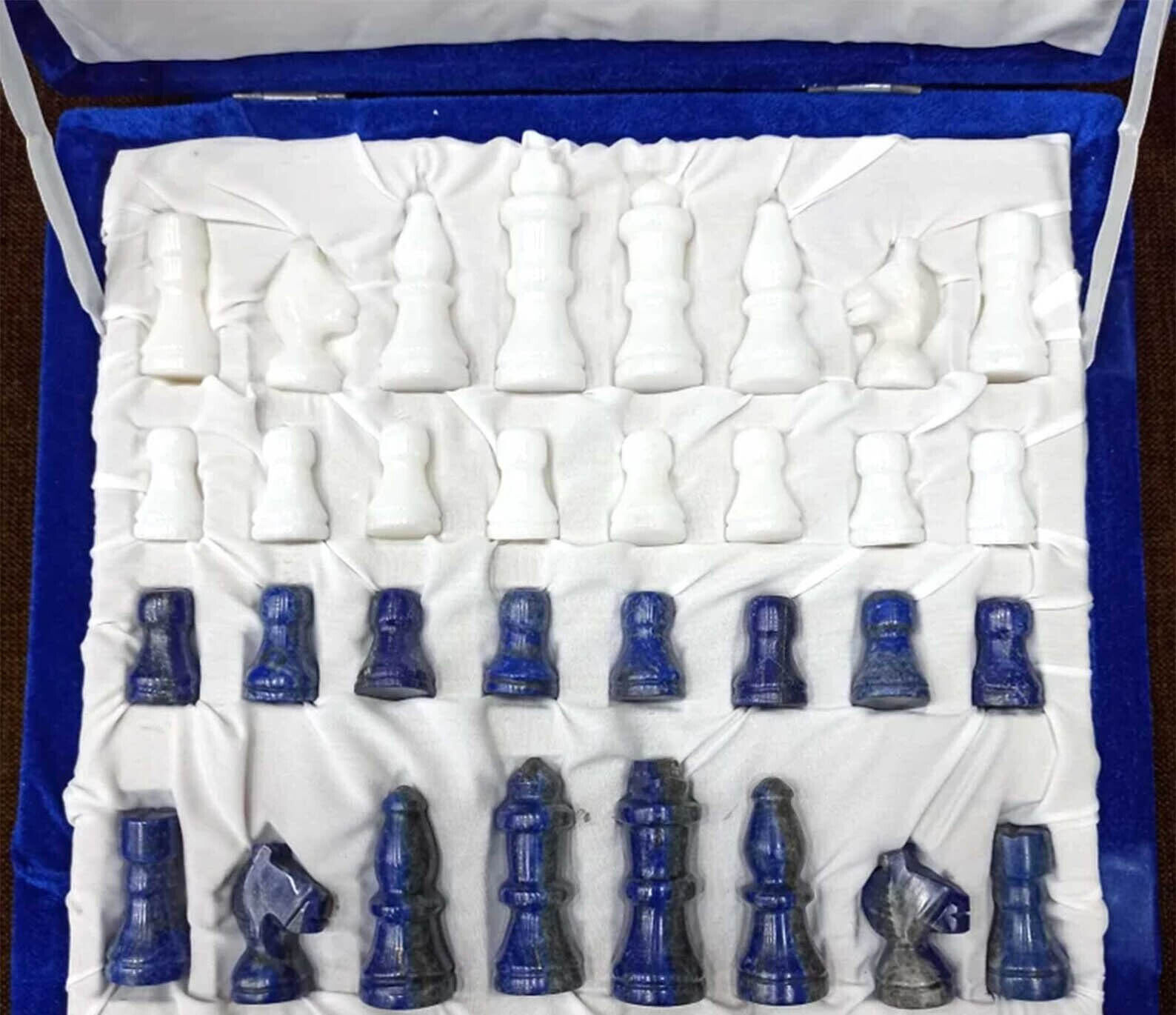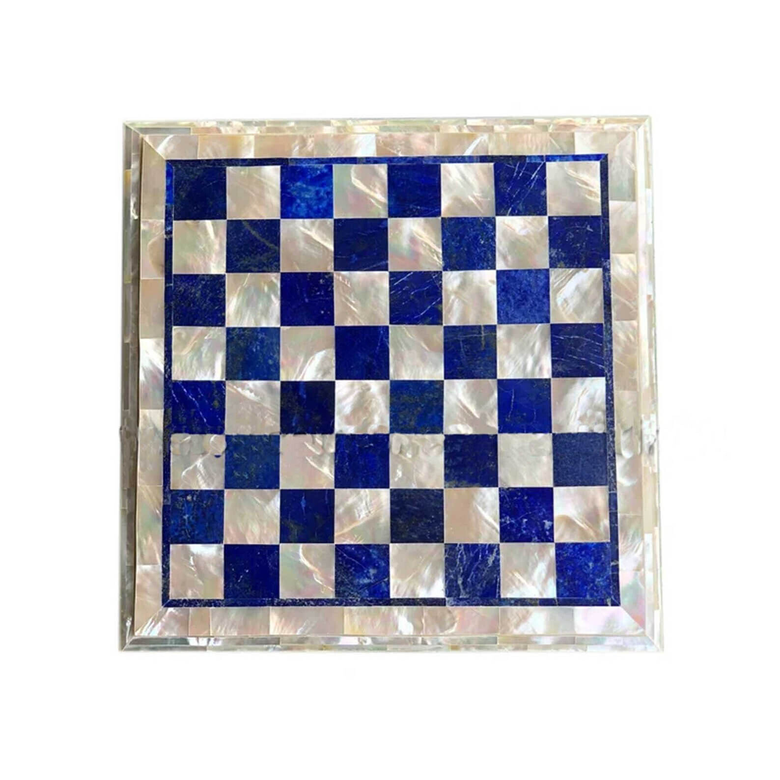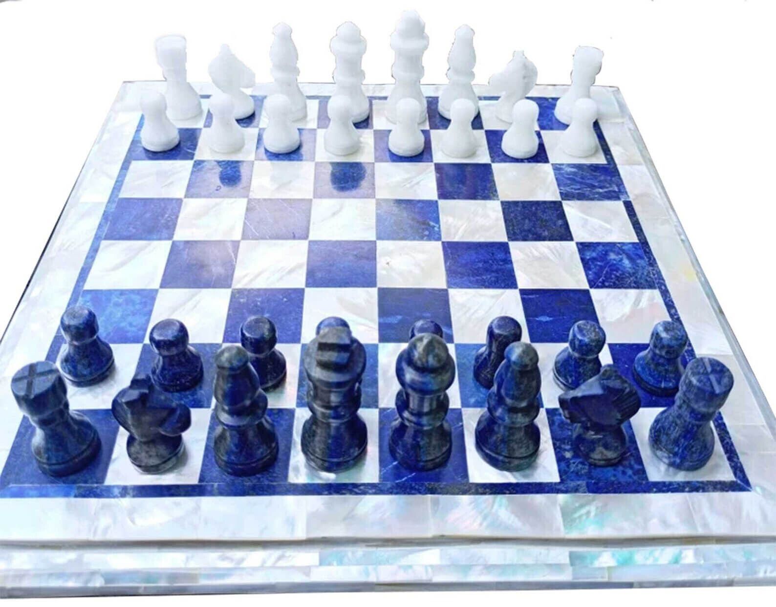 Blue Lapis Lazuli Stone Elegant Chess Board Set 2" Pieces MOP Stone Games Decors