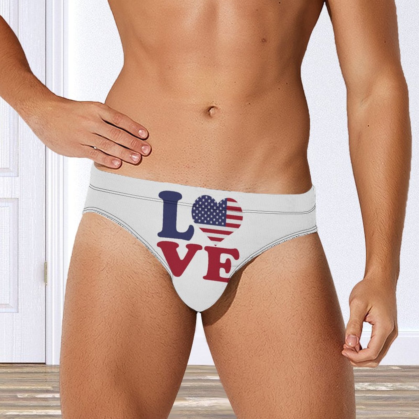 Men swim briefs love hearts american flag Independence day July 4th underwear for sports swim breathable soft athletic swimwear summer