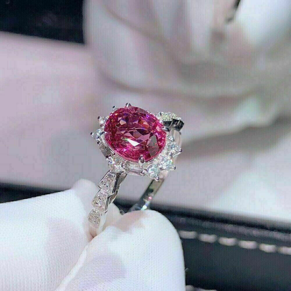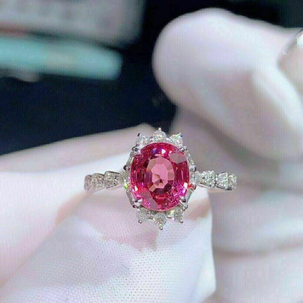 4Ct Oval Cut Simulated Pink Sapphire Halo and 50 similar items