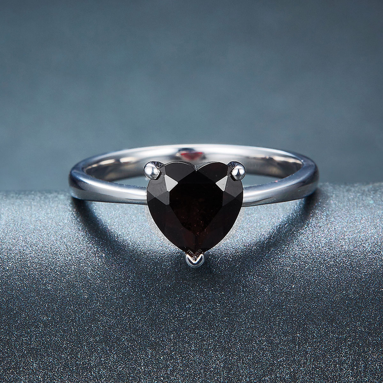 925 Sterling Silver Natural Heart Shape 2CT Black Garnet Gemstone Ring