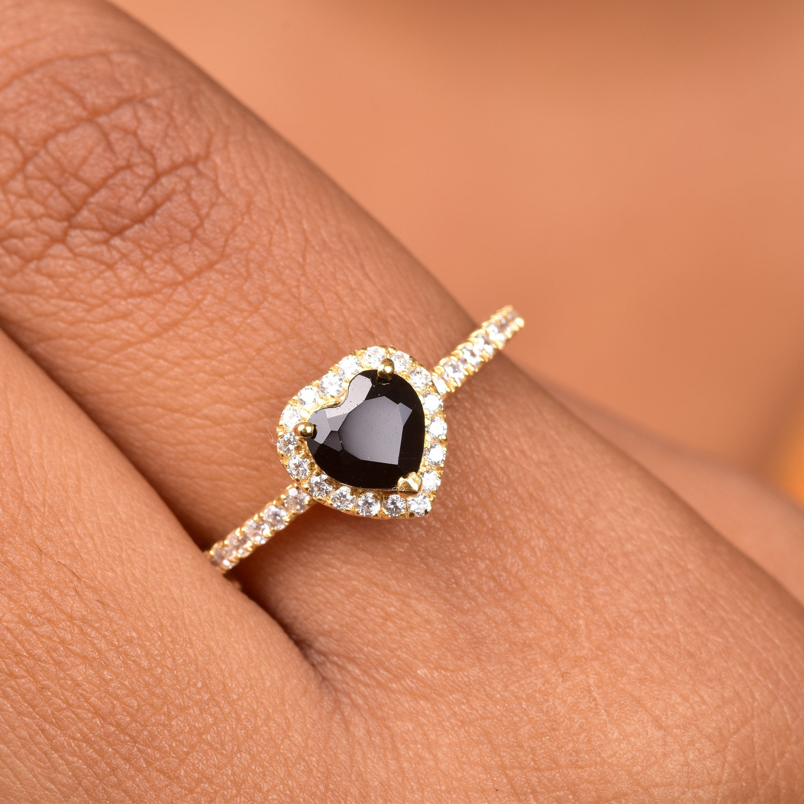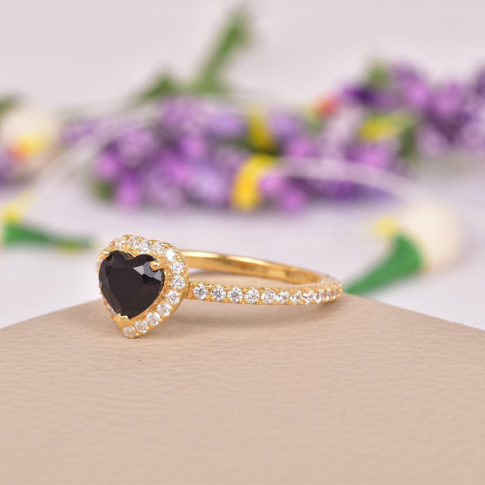 Natural Black Onyx And CZ Diamond Gemstone Sterling Silver Women Ring Jewelry