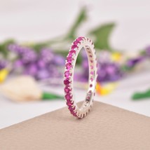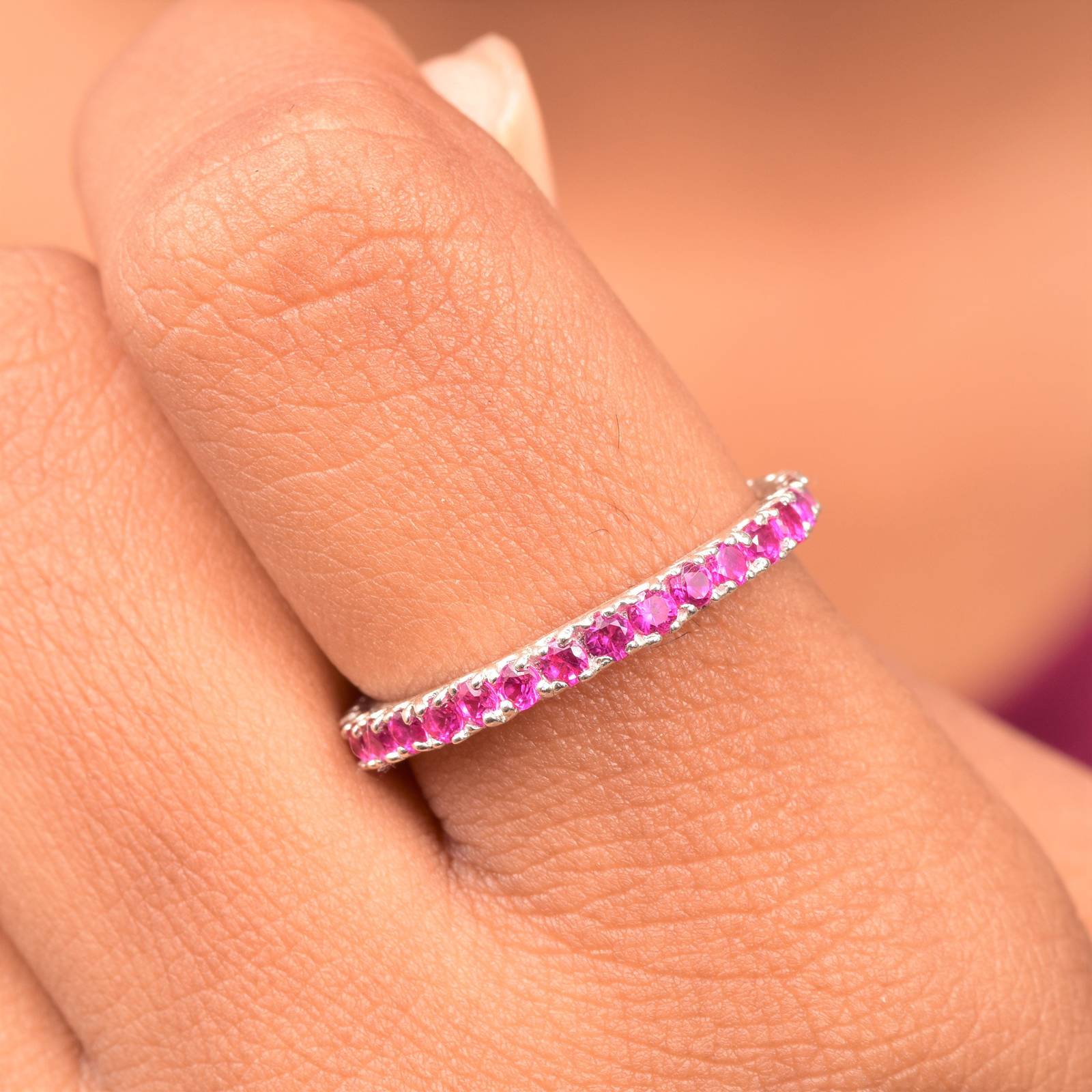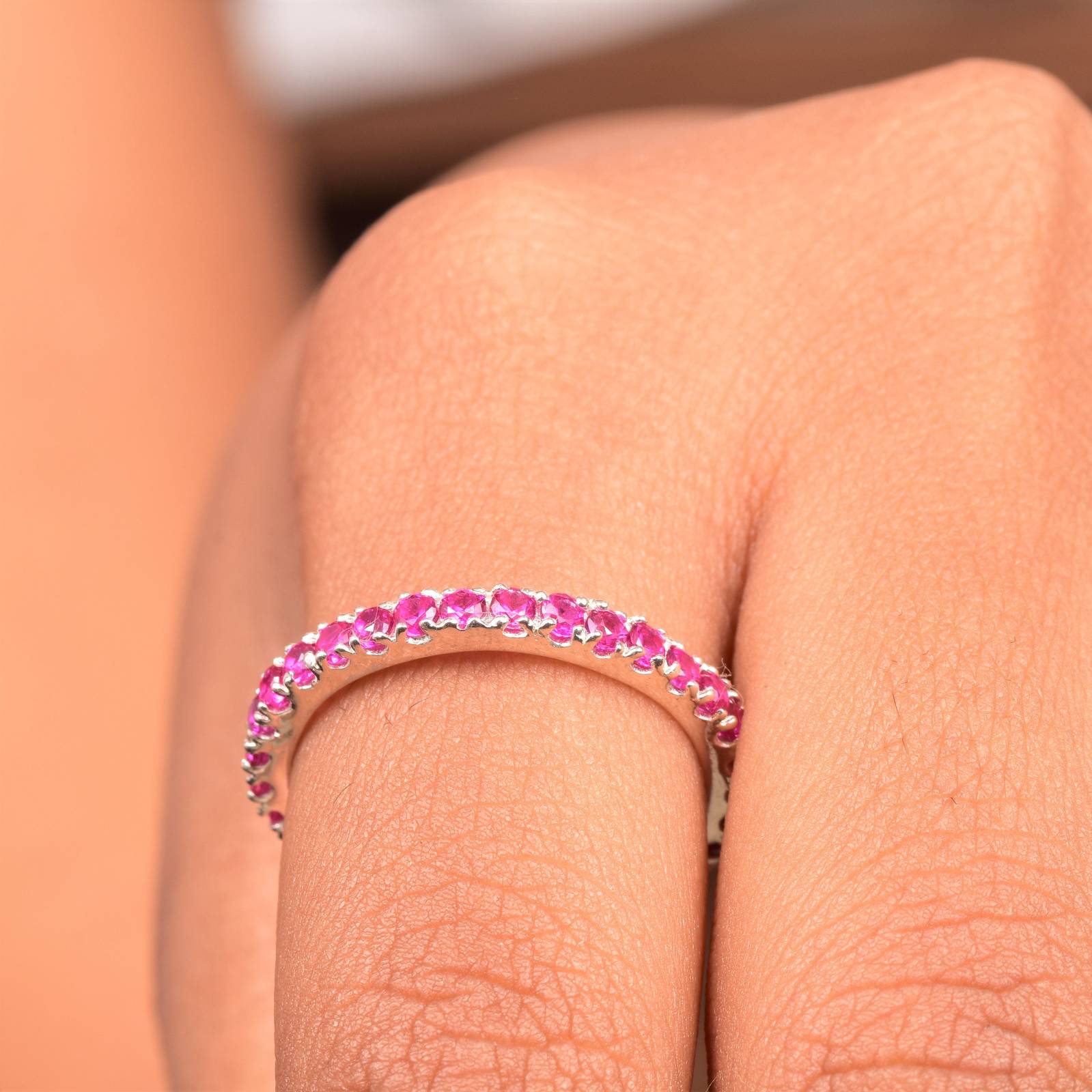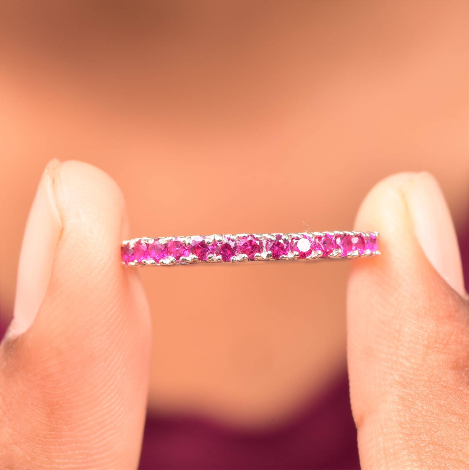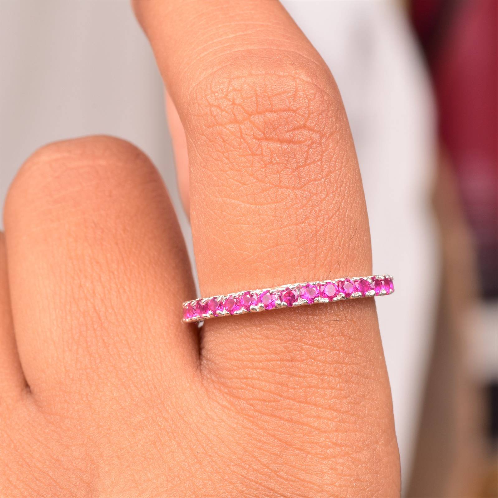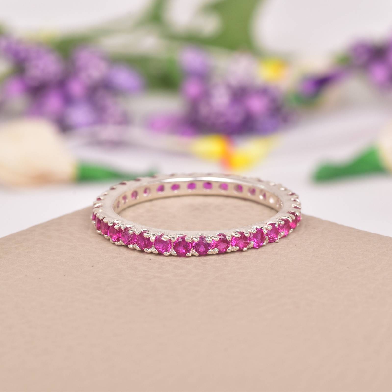 Natural Pink Ruby Round Gemstone Sterling Silver Band Ring Jewelry